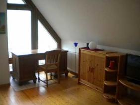 Gemütliche Sitzmöbel, Schreibtisch, Flachbild-TV, Ausgang zum Balkon (Nord-Ost-Ausrichtung) mit Sitzmöglichkeit und Gasgrill.